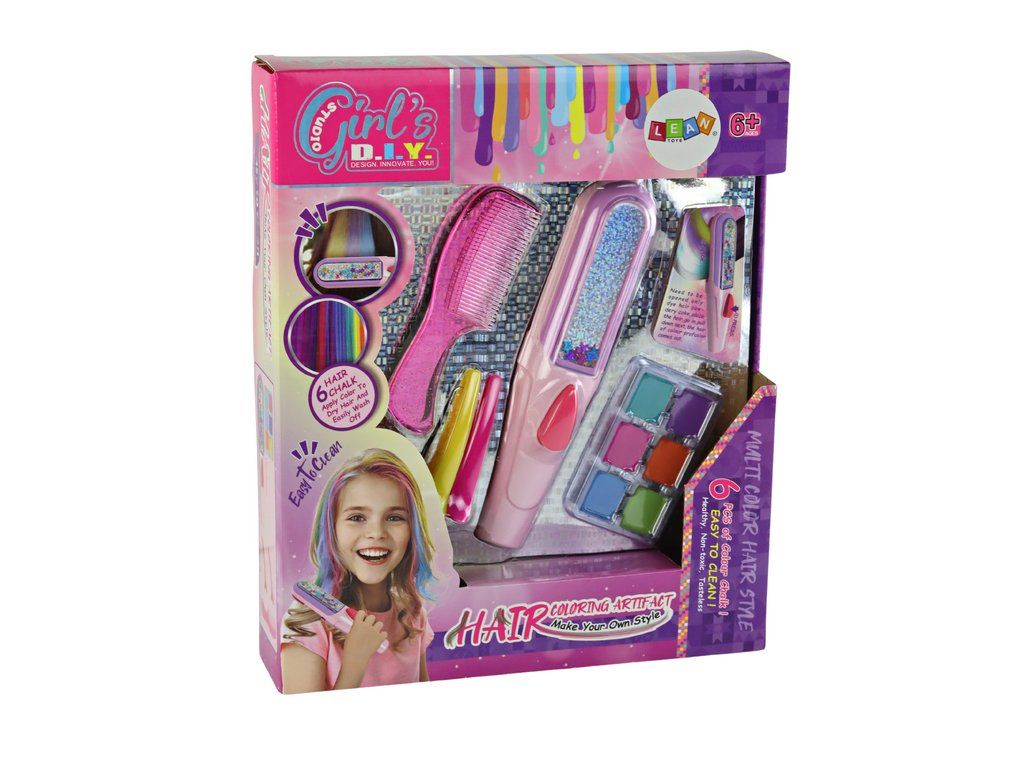 Sada obsahuje speciální zařízení umožňující bezpečné malování vlasů. Tento inovativní nástroj zajistí rovnoměrné pokrytí vlasů barevnými destičkami, eliminuje riziko poškození nebo podráždění vlasů. V sadě je šest barevných destiček: tyrkysová, růžová, modrá, zelená, oranžová a fialová. Díky nim si holčička může libovolně míchat barvy, vytvářet jedinečné odstíny a efekty na svých vlasech.