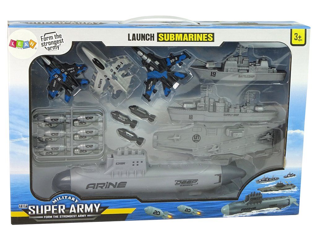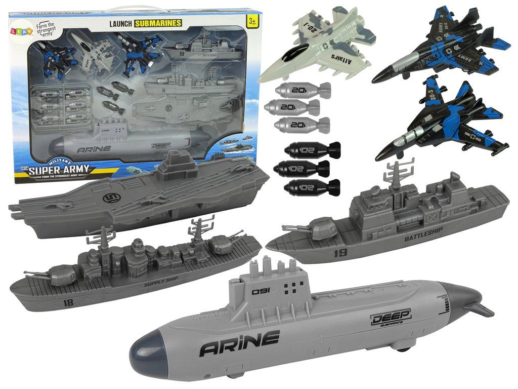 Tato sada válečných lodí a stíhaček umožní malým stratégům takticky uspořádat bitvu a rozvíjet jejich představivost. Stíhačky s vojenským zbarvením mohou kontrolovat vzdušnou situaci, zatímco ponorka s kolečky a odpalovacím zařízením na bomby přidává vzrušení do hry.