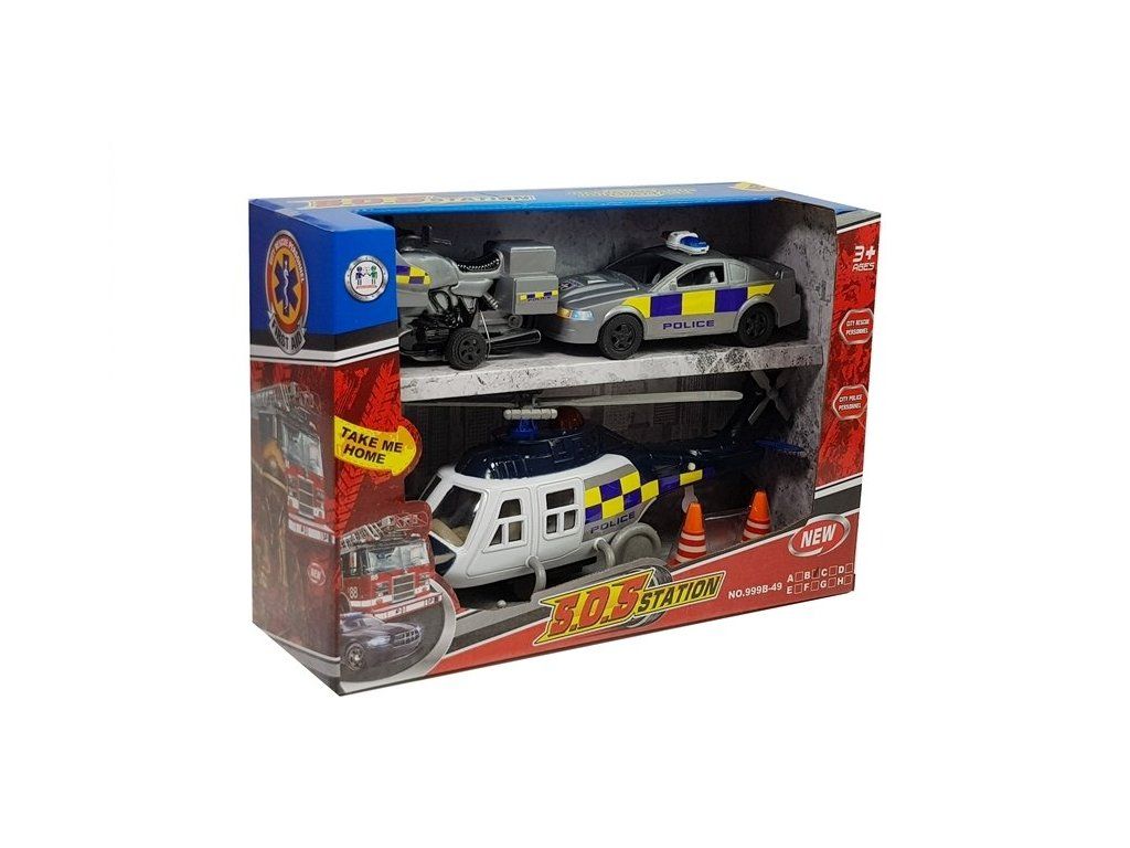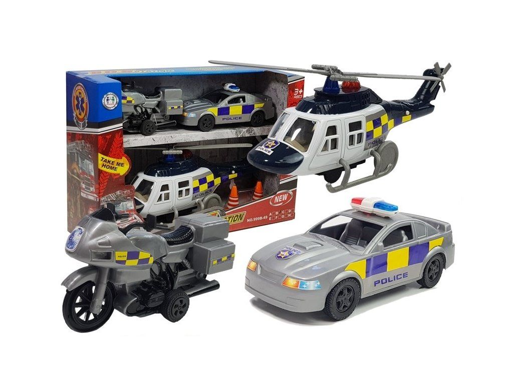 Sada policejní vozidla - helikoptéra, auto, motorka