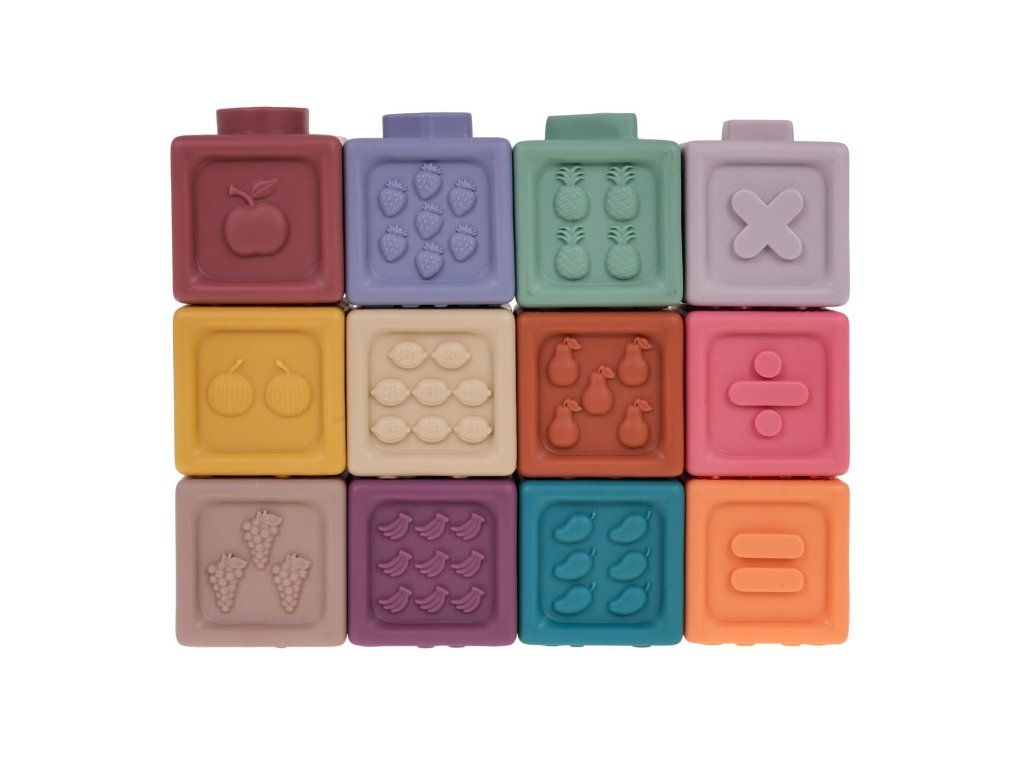 Sada 12 barevných senzorických kostek pro děti od 6 měsíců. Rozmanité barvy stimulují smysly dítěte a různé tvary podporují kreativní hru. Díky odlišným texturám poskytuje každá kostka dítěti jiný smyslový zážitek. Kostky lze použít k terapeutickým, vzdělávacím účelům nebo jako smyslové hračky pro miminka.