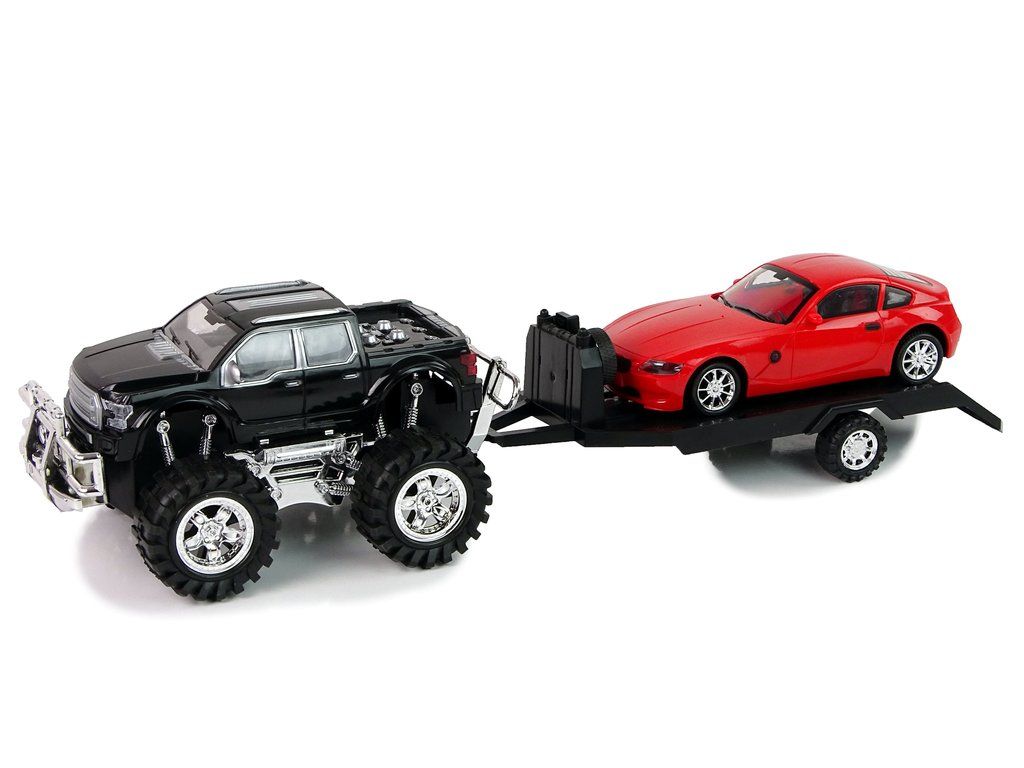 Terénní auto, pro které není žádná překážka příliš náročná. Perfektně funguje jak na asfaltu, tak na nerovných kamenech. Sada vytvořená pro milovníky aut, protože obsahuje až dvě auta v různých stylech. První z nich je černý MONSTER TRUCK s možností připojení přívěsu, který je součástí sady. Druhým je červené BMW, které lze převážet na přívěsu.