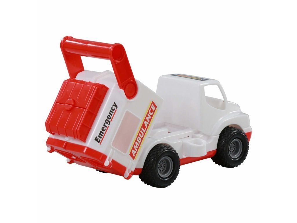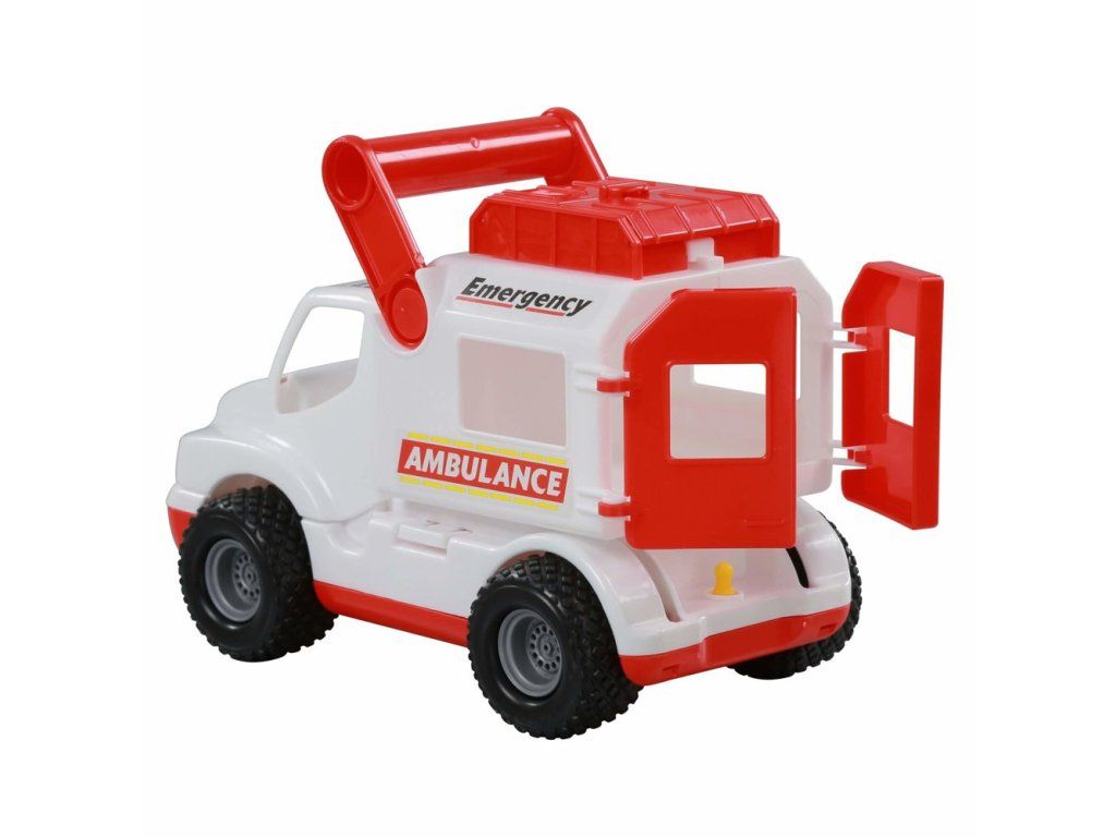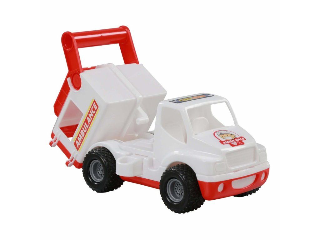 Autíčko sanitka je skvělou hračkou pro nejmenší z nás. Autíčko má gumová kola, takže přilne dobře k povrchu. Sanitku lze otáčet, díky páčce na boku autíčka.