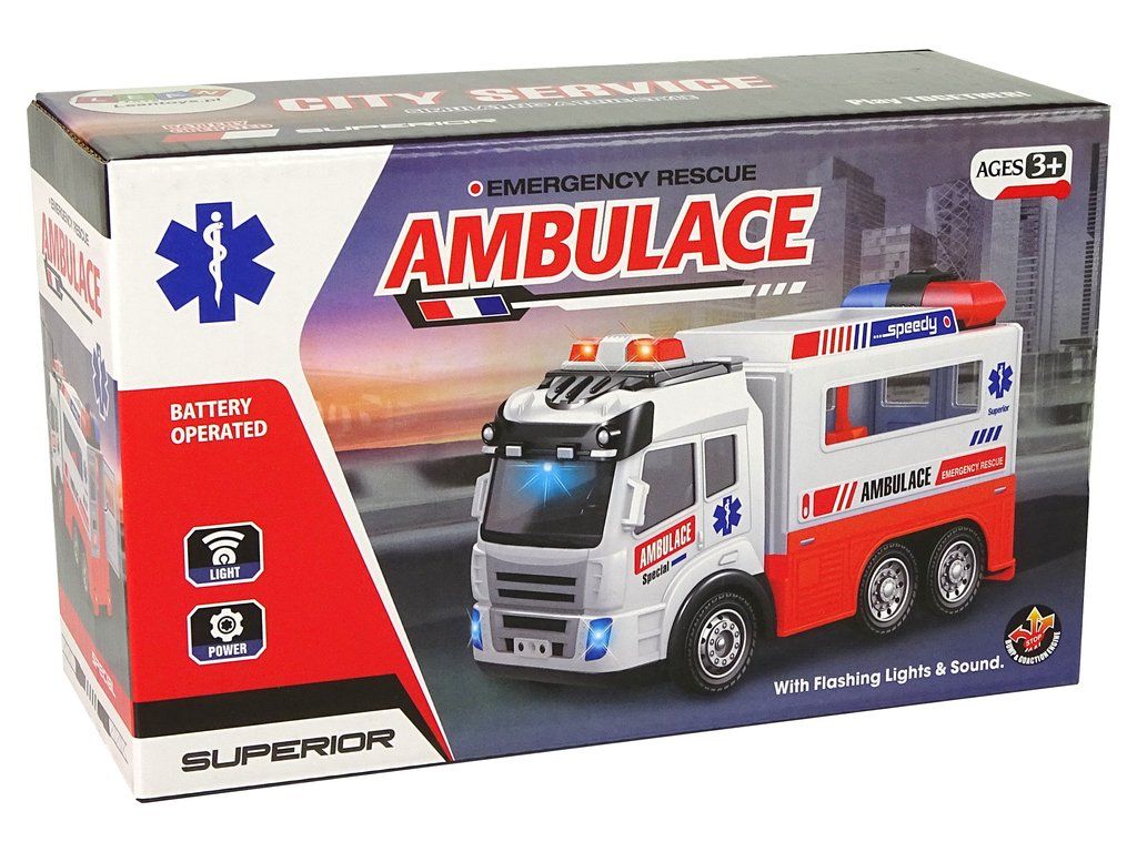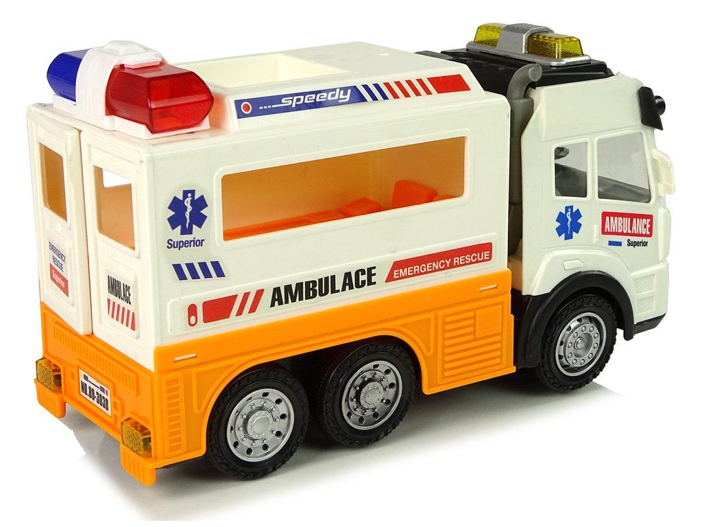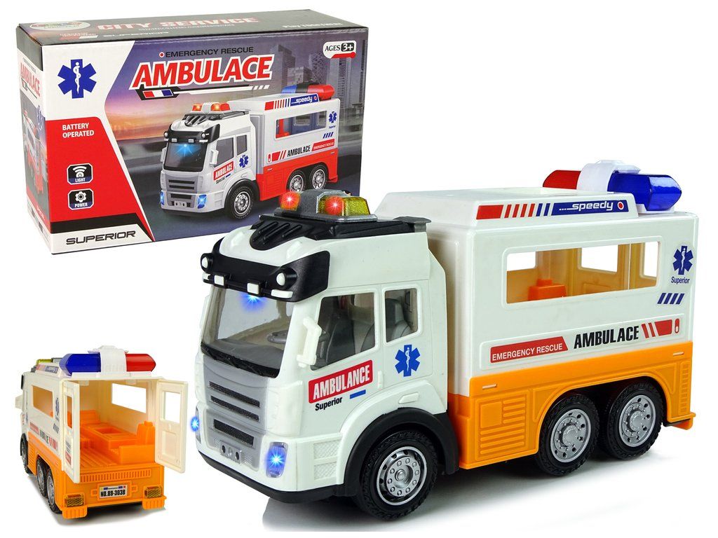 Autíčko má světelné a zvukové efekty. Další výhodou jsou otevírací zadní dveře - uvnitř je vidět dokonale reprodukovaný interiér a místo pro lékařské vybavení.
