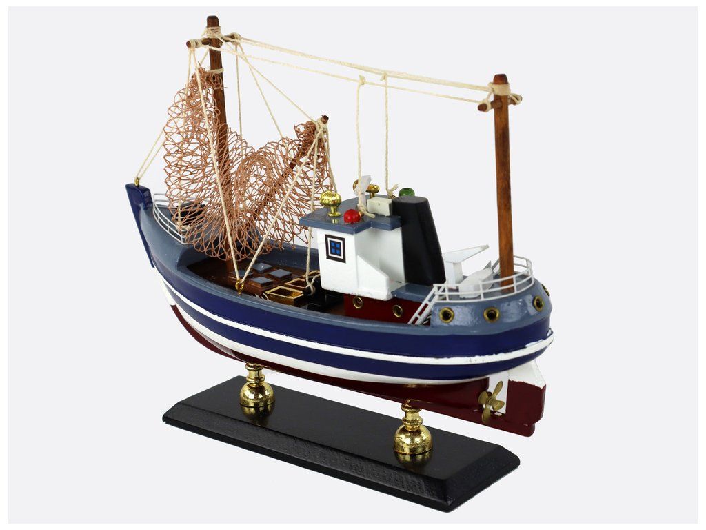 Tento model sběratelské lodi je jedinečným řemeslným dílem. Je umístěn na masivních dřevěných nohách, což mu dodává eleganci a sofistikovanost. Loď je tmavě modrá s bílými pruhy, což jí dodává klasický námořní vzhled.