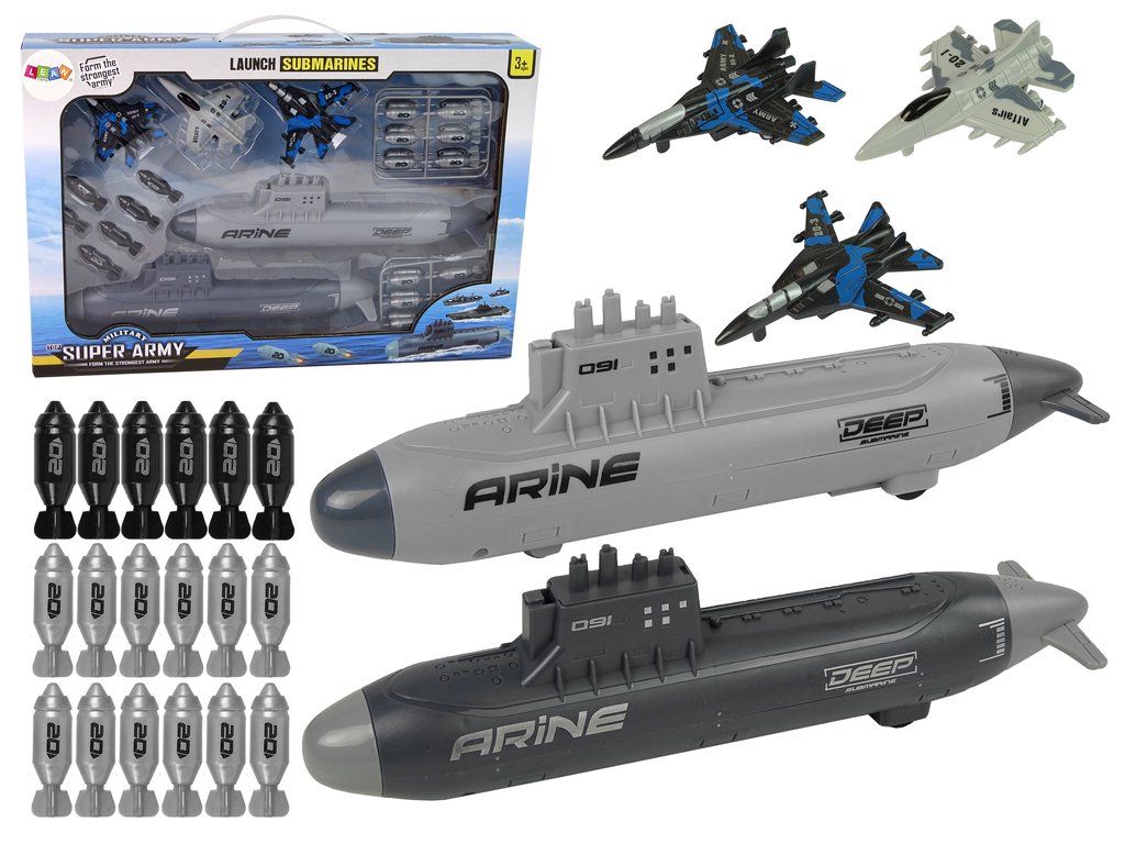 - Stíhačky mají výrazné označení ve vojenských barvách. Během války mohou kontrolovat situaci ze vzduchu. Ponorka má připevněná kolečka, díky kterým se snadno pohybuje po podlaze. Její druhou výhodou je odpalovač bomb, který funguje jako normální zbraň. Nabijete raketu shora, přitáhnete konec ponorky k sobě a vystřelíte! Bomba vystřelí z přídě lodi a rozbije nepřítele.