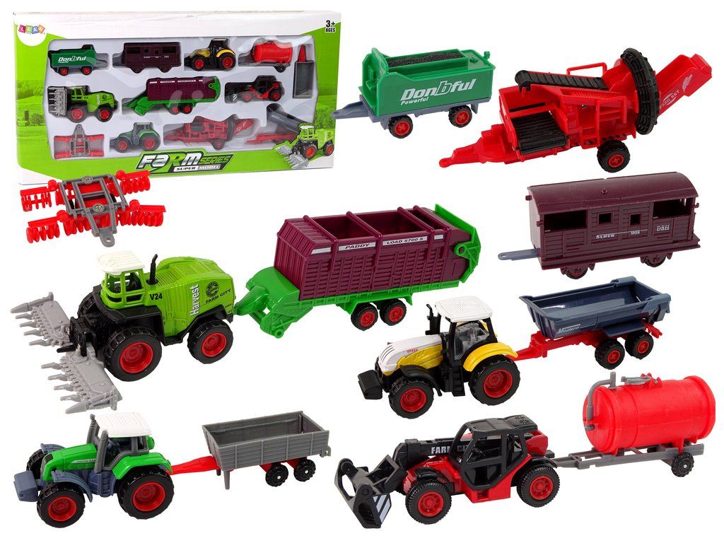 Sada zemědělských strojů je skvělým dárkem pro každého malého fanouška zemědělských strojů. Sada obsahuje traktory s různými přívěsy s kovovými prvky, díky kterým bude sada sloužit dlouhou dobu a malý farmář bude moci vymýšlet mnoho scénářů hry a rozvíjet svou fantazii.
