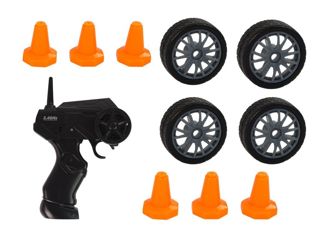 S autíčkem lze jezdit dopředu, dozadu, zatáčet doprava a doleva. Dodává se náhradními koly a sadou kuželů pro vytvoření úžasných závodních drah pro závodění nebo driftování.