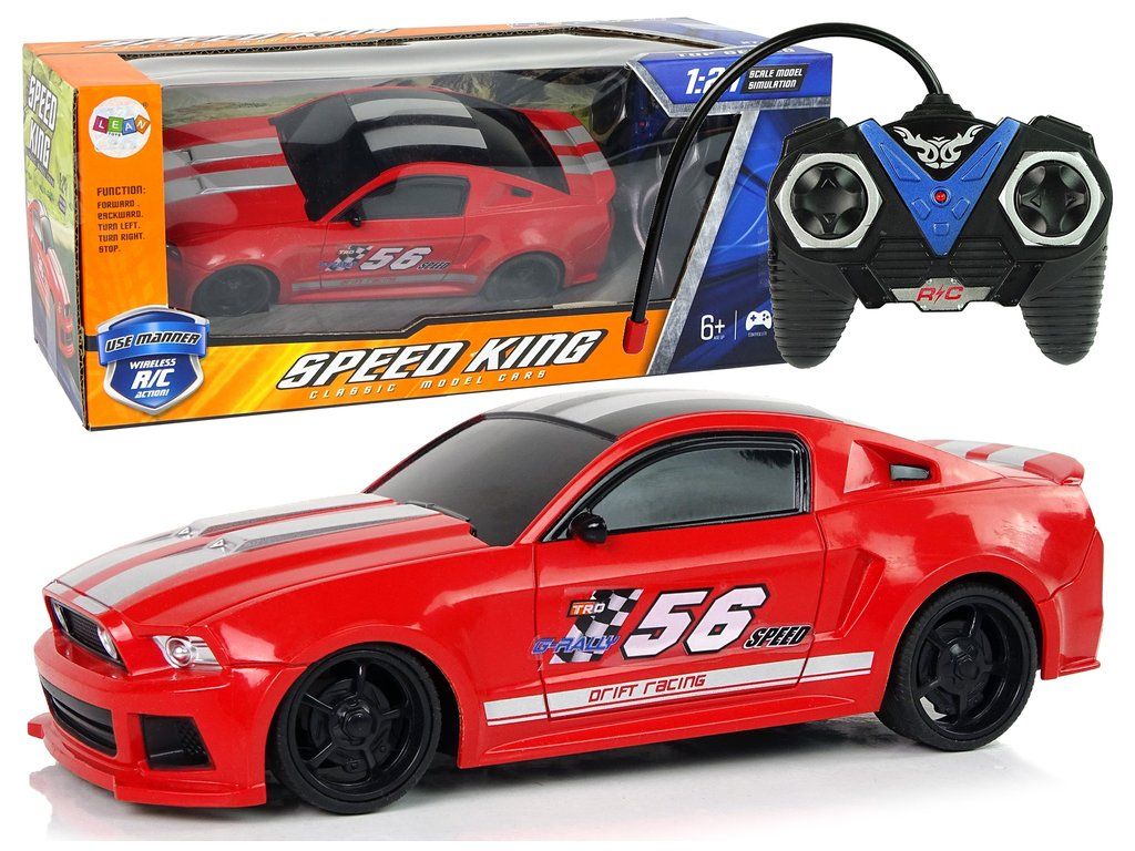 Dálkové ovládání, které je součástí sady, Vám umožní řídit malý model auta se dvěma samostatnými tlačítky pro jízdu vpřed/vzad a do stran. Model v červené barvě je vyroben v měřítku 1:24.