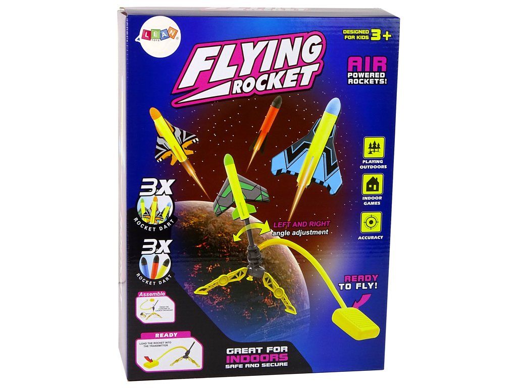 - - Umístěte rakety na sběrnou trubku, ke které je připojen polštářek, a poté rychlým pohybem polštářek stiskněte. Tlak, který takto vznikne uvnitř celé hračky, vyrazí raketu vysoko do vzduchu! Podívejte se, kdo dokáže vystřelit dál? Veselé soutěžení a skvělá zábava na dlouhé hodiny. Běž, skákej, vystřel. Uvidíme, čí raketa doletí výš a dál!