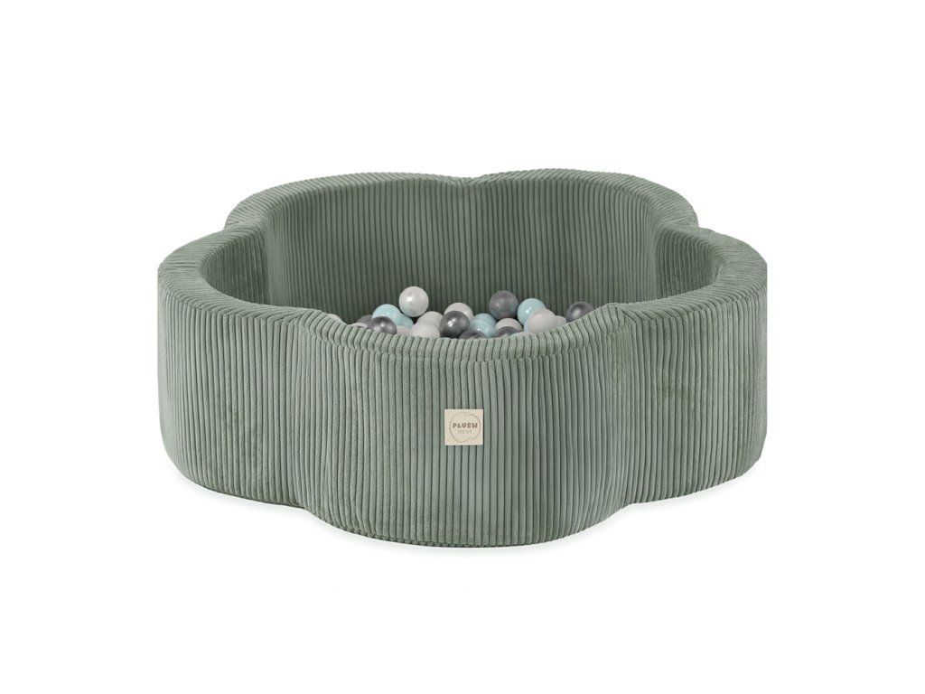 Suchý bazén Květinová zóna prémiový manšestr zelený 95 × 30 cm s 200 míčky