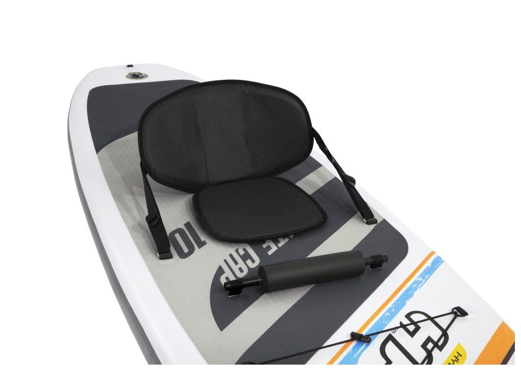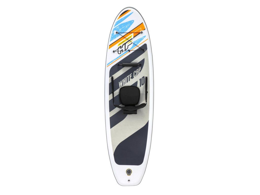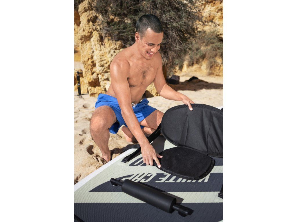 Toto prkno je označeno jako univerzální, což znamená, že má ideální tvar pro bezpečnou a multifunkční jízdu a snadno se přemění na kajak s přiloženým sedákem a opěrkou na nohy.