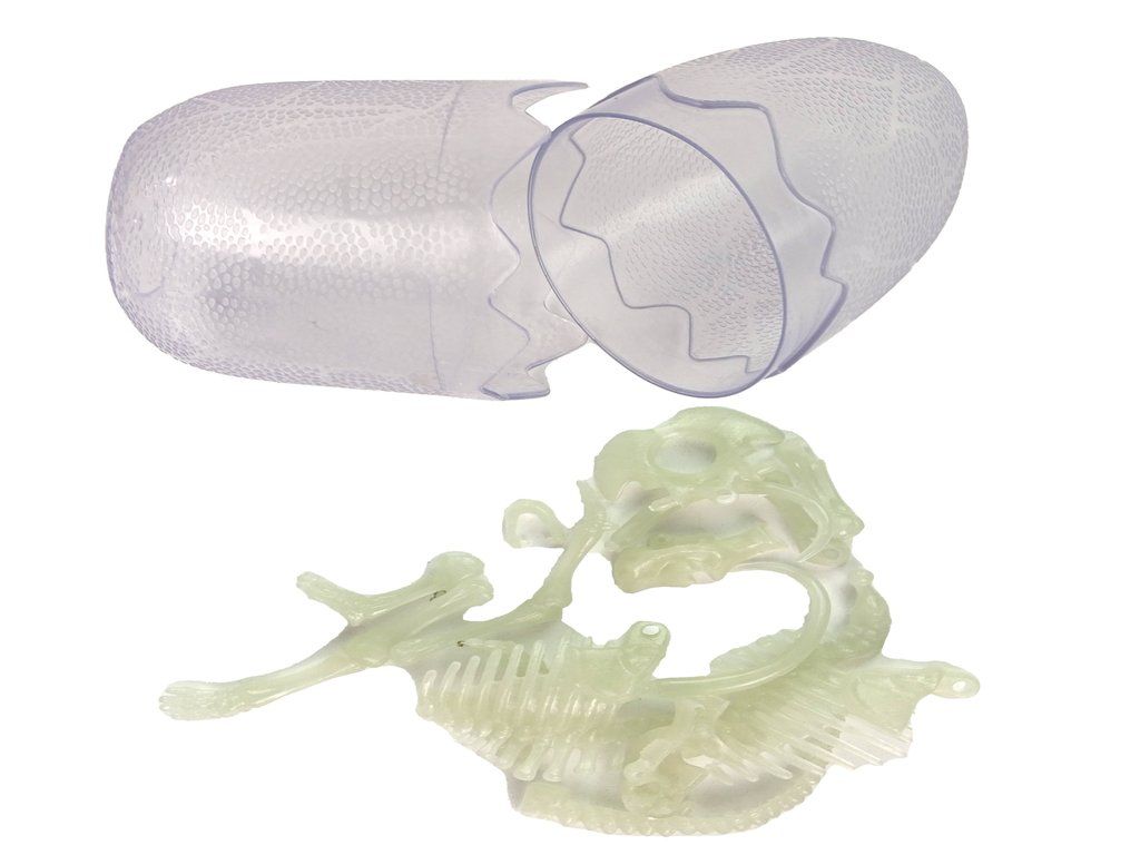 3D kostra dinosaura, která děti vtáhne do fascinujícího světa pravěku, udělá radost každému milovníkovi dinosaurů. Uvnitř transparentního vejce se skrývají díly pro sestavení svítící kostry dinosaura, která po složení zaujme nejen ve dne, ale i ve tmě. Kostra svítí ve tmě, což z něj dělá působivý doplněk do dětského pokoje i originální prvek pro večerní hraní. Velké vejce navíc přidává efekt překvapení a zvyšuje celkový zážitek z rozbalování.