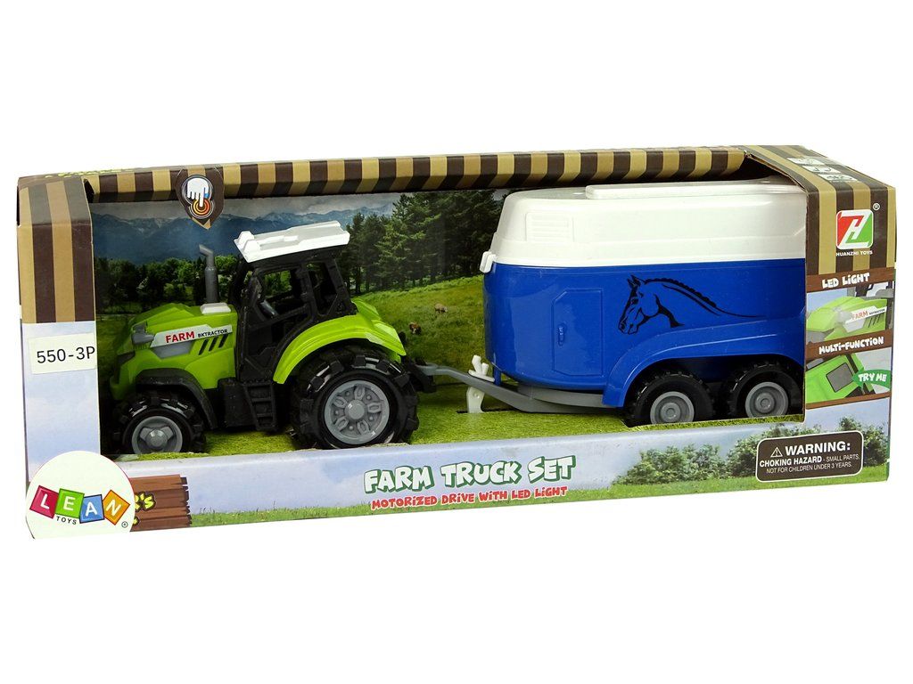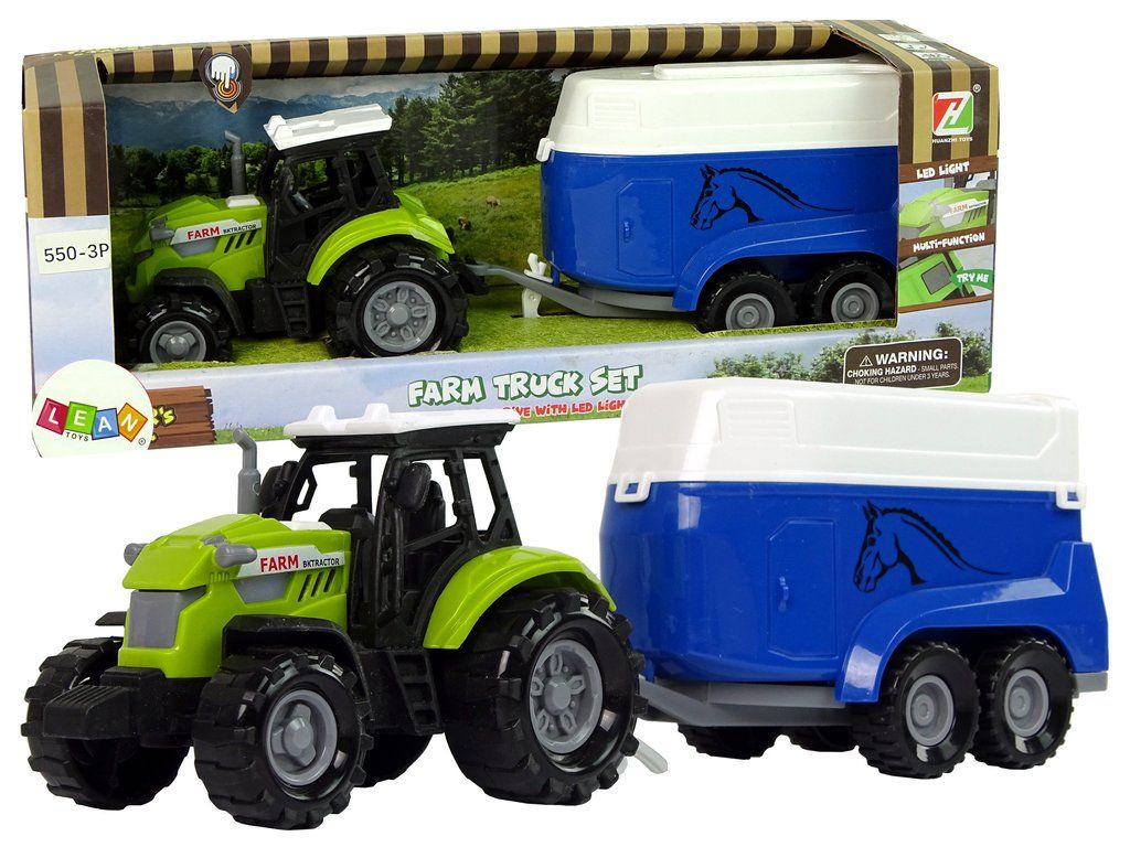Přívěs umístěný na zadní části vozidla je odnímatelný. Je umístěn na čtyřech kolečkách, které dokonale zvládají neočekávané manévry. V zadní části je otevírací poklop, který umožňuje farmáři přístup ke koním a umožňuje volné vypuštění zvířat do výběhu. Traktor vydává zvuky skutečné jízdy a fungování motoru. Tlačítko se nachází na kapotě traktoru.