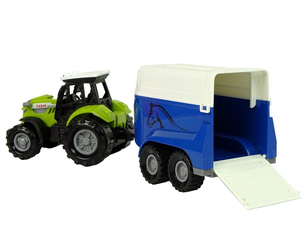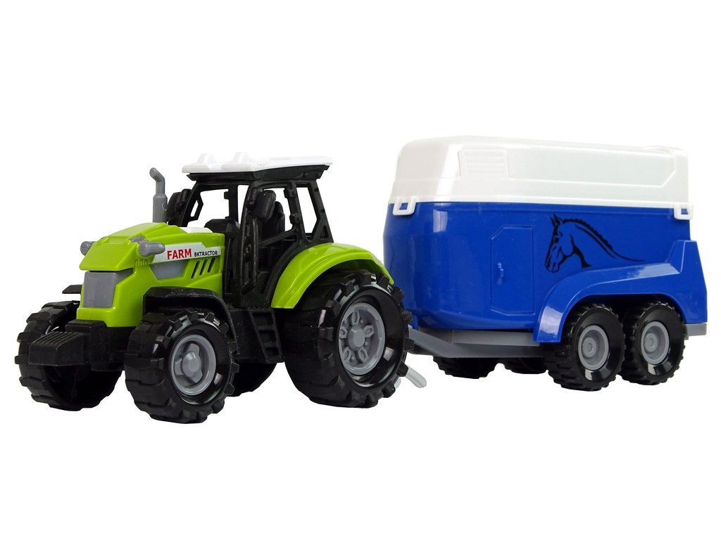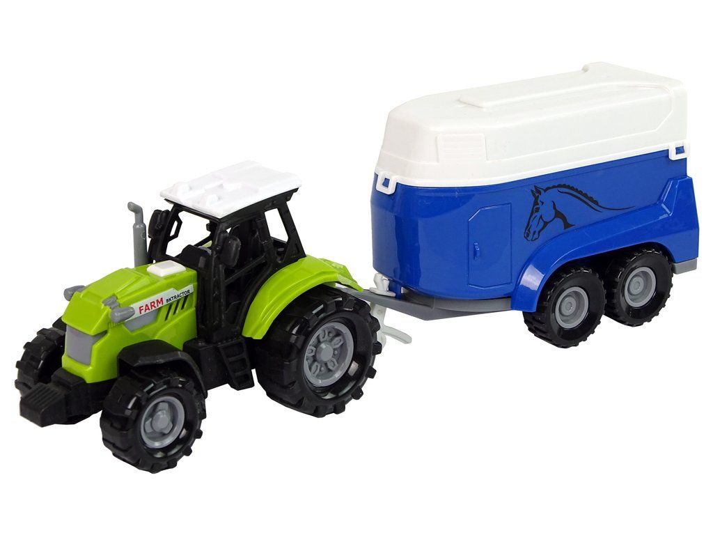 Traktor s přívěsem pro koně zelený