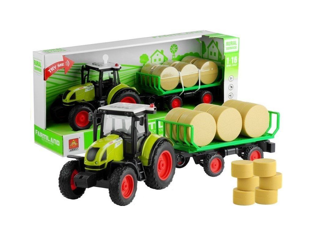 Traktor s vlečkou a senem se zvuky a světly