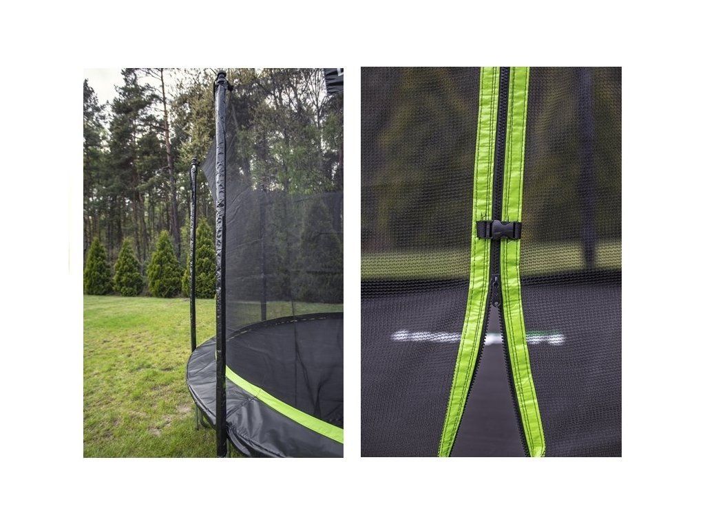 Představujeme Vám zahradní trampolínu vysoké kvality. Zahrnutí do každodenních činností vám pomůže spalovat přebytečný tuk, udržet štíhlou postavu nebo zlepšit svou kondici - ani nebudete cítit, že cvičíte. Uvedená trampolína PRO ve velikosti 366 cm je bezpečný výrobek, o čemž svědčí označení CE. Jeho konstrukce byla vyrobena z certifikovaných materiálů nejvyšší kvality, což ji činí odolnou vůči korozi nebo nepříznivým povětrnostním podmínkám. Celková výška sítě, dosahující 180 cm, dovoluje Vám šílet beze strachu skákat. Trampolína Lean Sport PRO 12 FT můžete rozdělit dvěma způsoby. Aby se zvýšila úroveň bezpečnosti, namontujte síť do konstrukce - zabráníte tak kontaktu skoků do sloupku a pružin, čímž se sníží riziko zranění. Pokud však chcete více místa ke skoku, aby mohlo hrát více lidí současně, sestavte strukturu tak, že sestavíte síť venku - umístíte ji přímo na sloupy chráněné pěnou. Přibližná vzdálenost od obušku k zemi je 80 cm - sada obsahuje třístupňový žebřík, který usnadní vstup a výstup z trampolíny. Tato trampolína je určena pro všechny jumpery - děti od 3 let a dospělé.