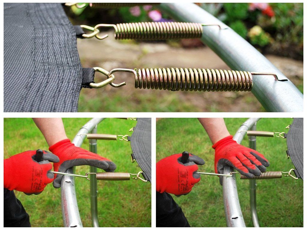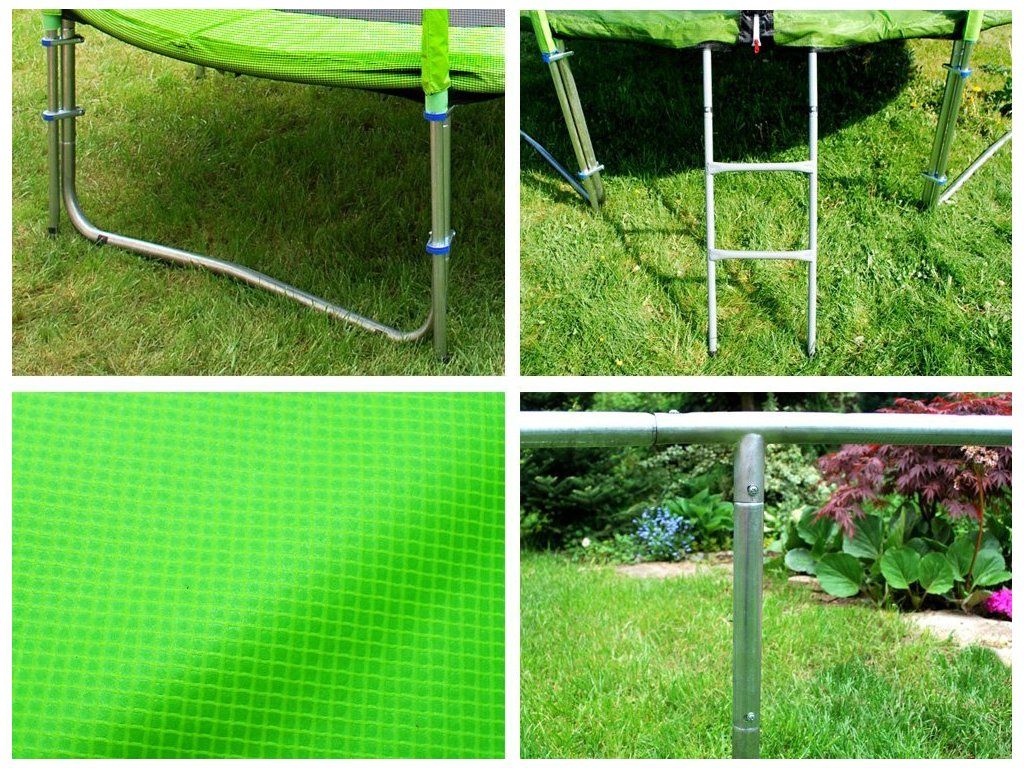 - Trubky jsou připevněny k nohám trampolíny silnými šrouby