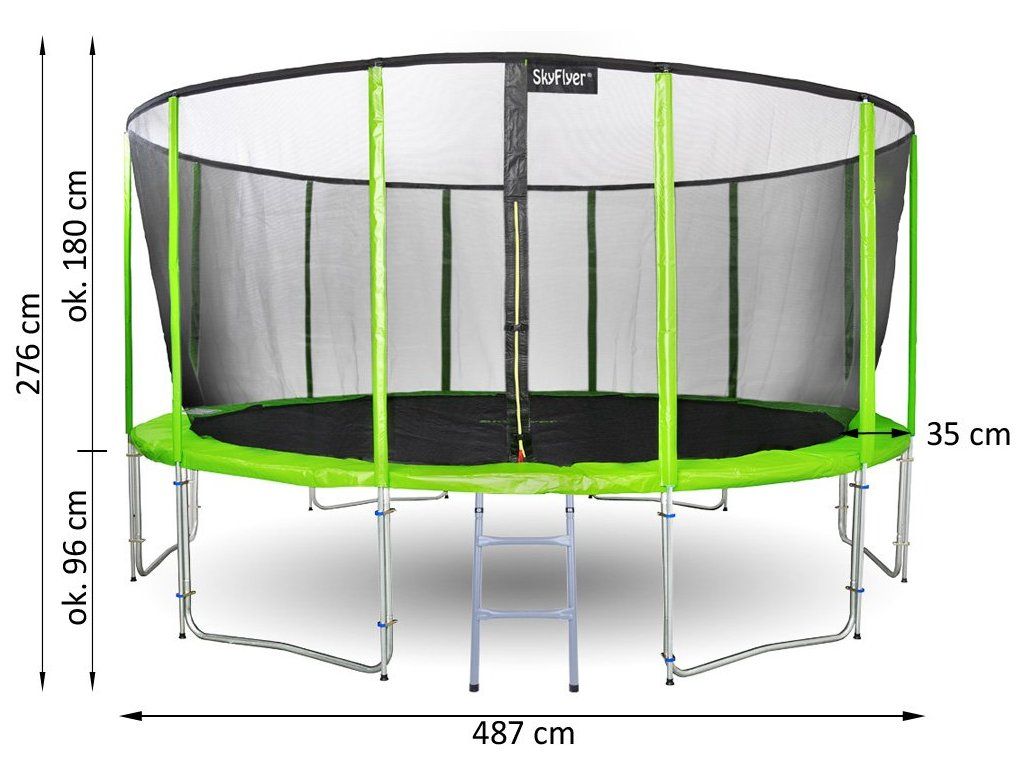 Trampolína s ochrannou sítí a žebříkem 487 cm zelená
