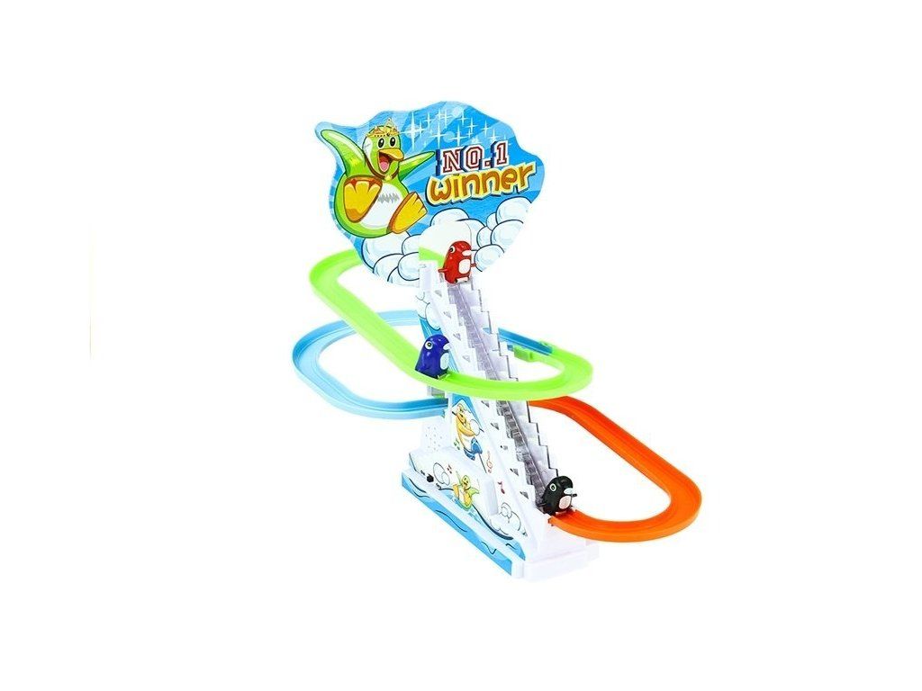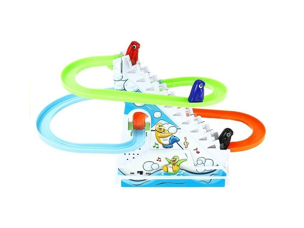 Herní set s tučňáky na pohyblivých schodech je kouzelná a pestrobarevná hračka určená pro nejmenší děti, které rády hrají interaktivně. Během hry se děti budou těšit z rytmické a veselé melodie, která je provází.