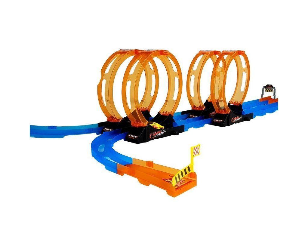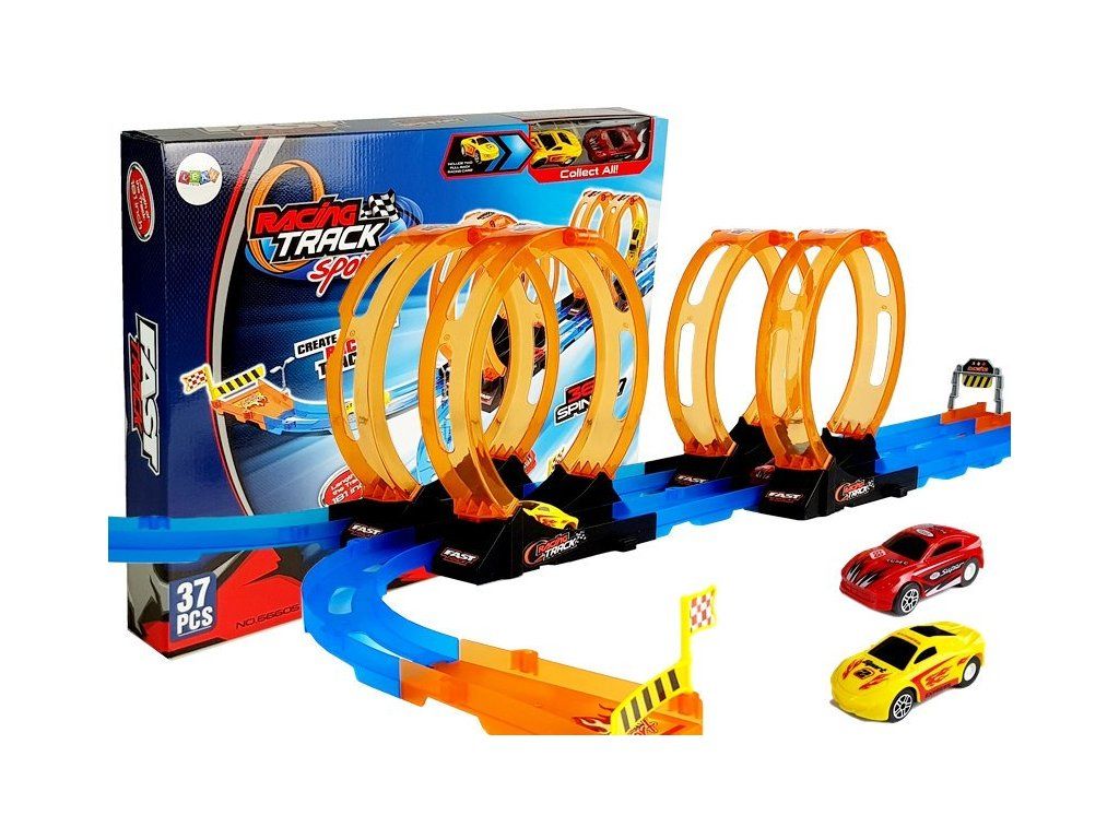 Velká autodráha se smyčkami 360 stupňů. Stačí natáhnout autíčka a vystřelit. Sada se skládá ze 37 prvků.