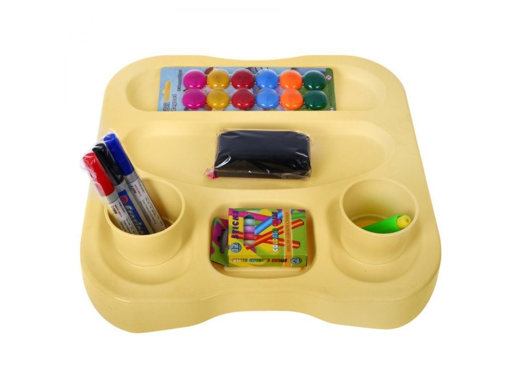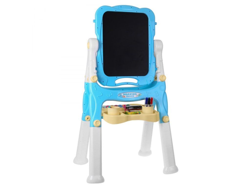 Na černé, křídové straně můžete malovat křídou. Sada obsahuje speciální držák pro držení křídy, zabraňuje zlomení křídy a udržuje ruce batolat čisté. Magnety lze také připevnit na černou stranu. Tabule může být otočena o 360 stupňů, je pečlivě vyrobena.