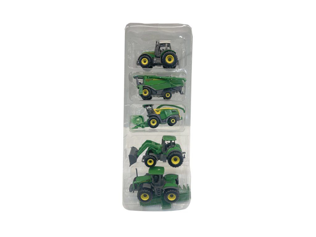 Detailně zpracovaná sada pěti kovových zemědělských strojů v měřítku 1:64 potěší všechny malé fanoušky traktorů a práce na farmě. Každý vůz je vybaven sliding pohonem, díky kterému se snadno rozjede po hladkém povrchu. Modely zahrnují různé typy farmářských vozidel – traktor, nakladač, secí stroj, kombajn či další pracovní techniku.