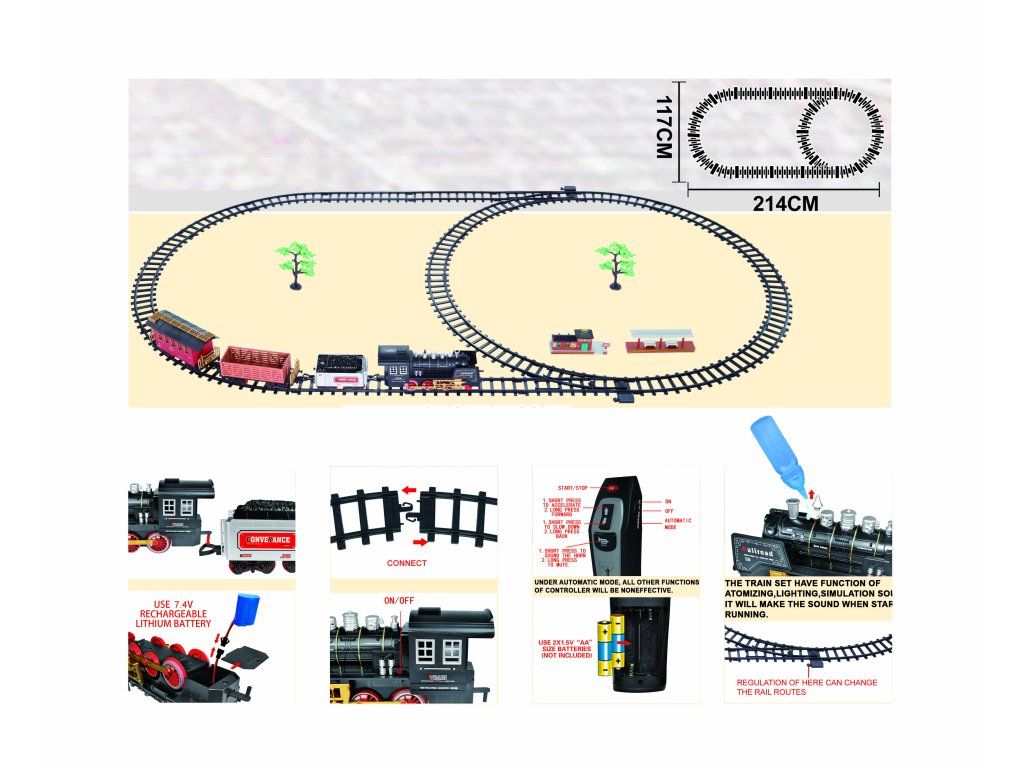 Obrovská a úžasná vláčkodráhá s lokomotivou, vagonky a kolejemi. Lokomotiva je na tužkové baterie. Mraky kouře a zářící světla činí vlak atraktivní pro malé i velké děti. Tato sada vydává realistické zvuky, zvuky zrychlení, zpomalení a trumpety.
