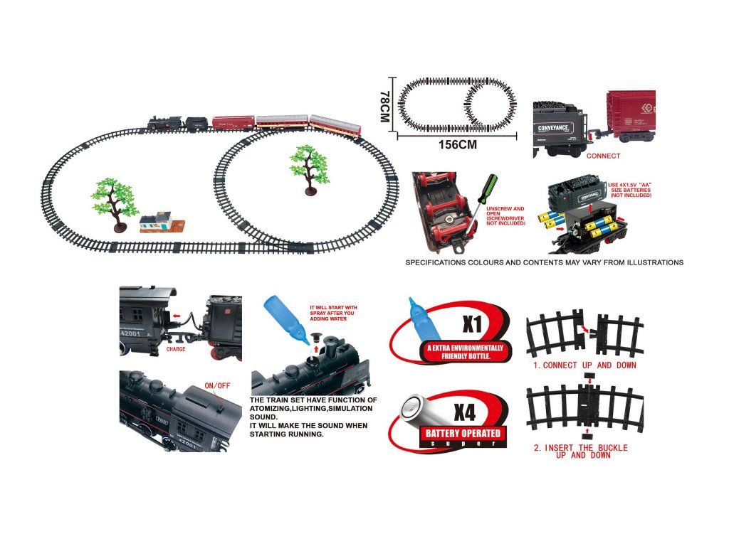Zažijte atmosféru skutečné železnice s touto detailně propracovanou vláčkodráhou, která přináší dětem realistický zážitek z jízdy. Trasa je postavena do tvaru elipsy o rozměrech 78 × 156 cm a obsahuje dva funkční přepínače. Během jízdy lokomotiva nejen vydává světelné efekty, ale také uvolňuje kouř z komína, což zvyšuje autentičnost celé hry. Koleje se spojují snadným a pevným způsobem, takže jsou stabilní, odolné a bezpečné pro děti.