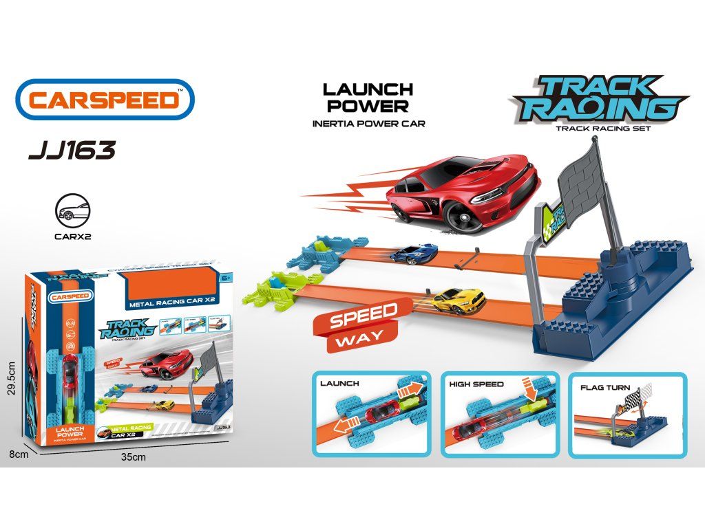 - Kompletní sada: V balení naleznete závodní dráhu a 2 kovové závodní autíčka.