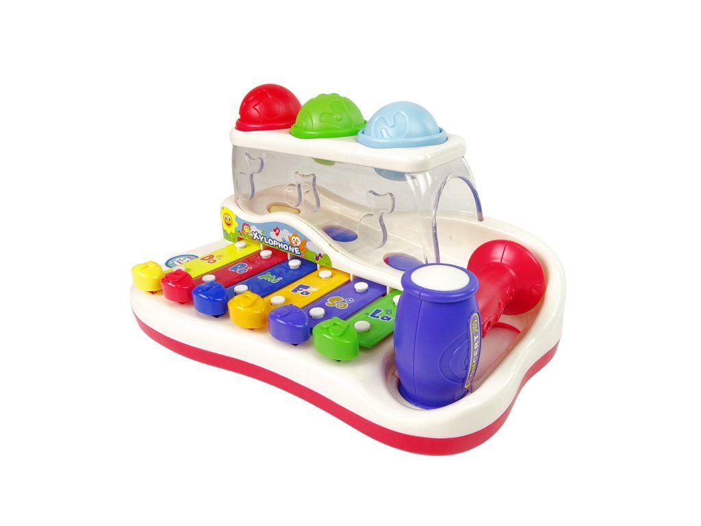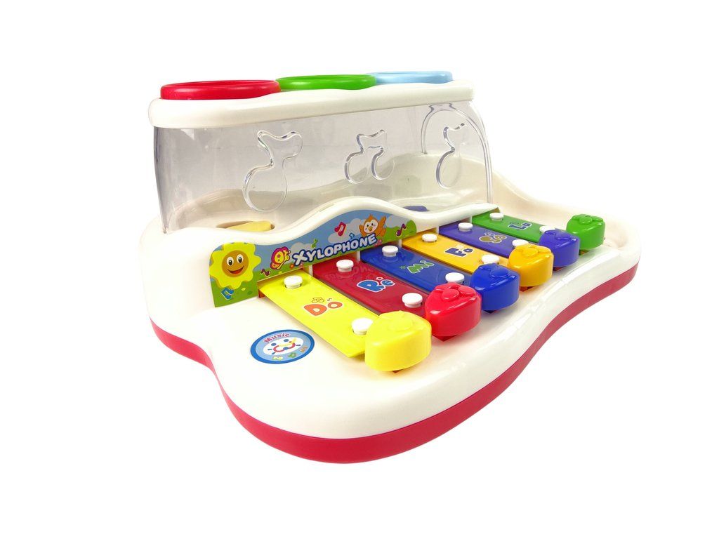 Cimbál má 6 pestrobarevných tlačítek, která dítě mačká prstem nebo bije paličkou, díky čemuž nástroj vydává příjemný zvuk stimulující sluch. Na xylofonových deskách jsou písmena a poté čísla, které lze po zapamatování použít k vytvoření vlastních hudebních skladeb, díky nimž bude vaše dítě kreativnější.