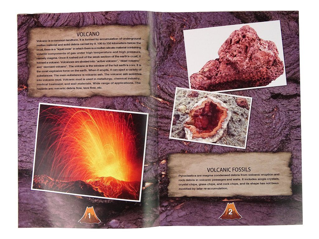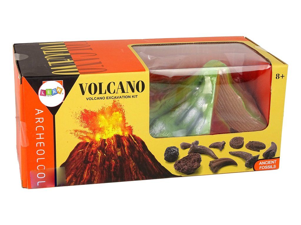 V sadě najdete vše, co potřebujete, abyste se mohli stát archeologem. Hlavním prvkem je působivá sopka o rozměrech 17 cm x 13 cm x 9 cm, uvnitř které se skrývají poklady prehistorického světa. Za pomoci přiložených nástrojů na kopání a štětečku na prach budete moci přesně objevovat ukryté zkamenělé artefakty.
