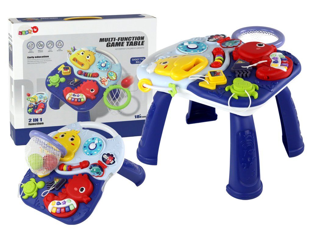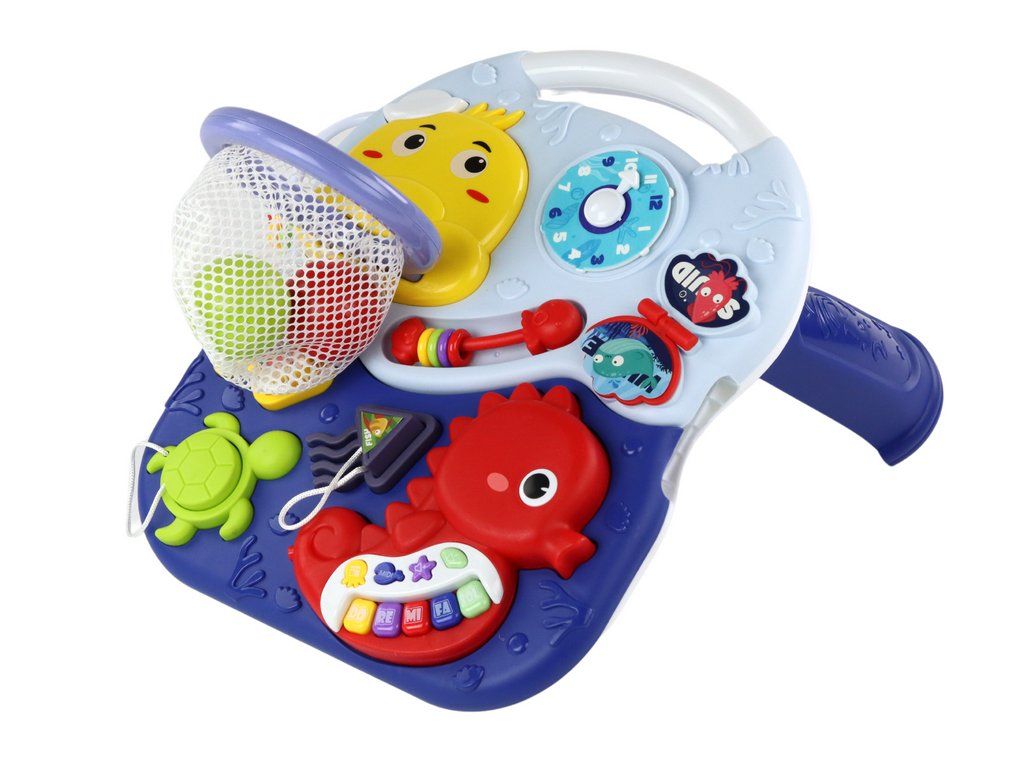Pro obohacení tematického charakteru stolku byl na něj navíc umístěn roztomilý námořník, který do hry vnáší námořnickou atmosféru. Ale to není všechno! Stůl se může kdykoli proměnit ve vzrušující basketbalový disk. V sadě najdete malý koš a tři míčky, které po připojení k námořníkovi umožní vašemu dítěti trénovat přesnost a obratnost.