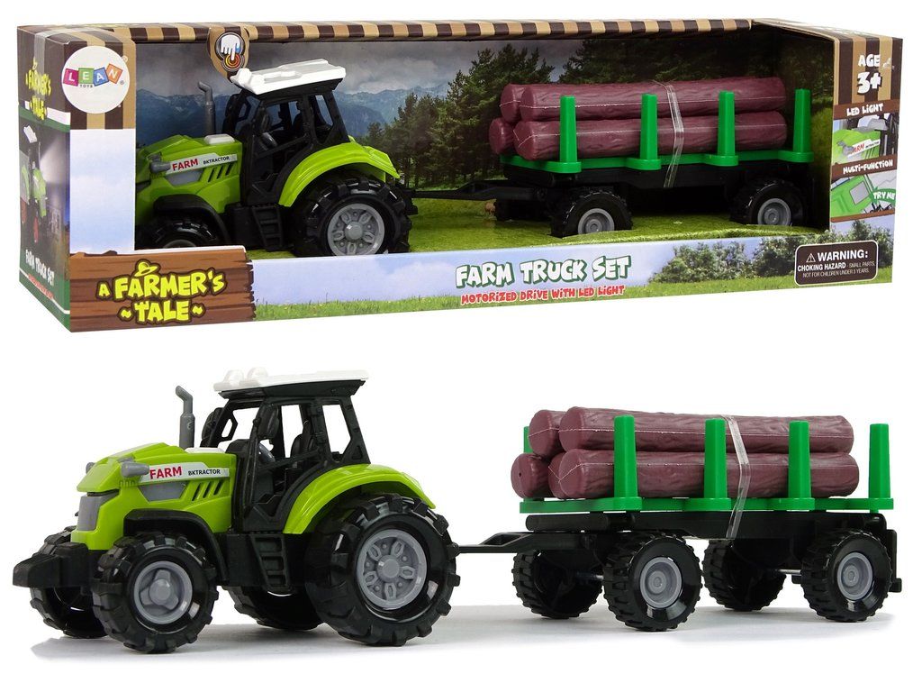 Tato hračka, která je skvělým dárkem, zajistí spoustu legrace. Přívěs umístěný na zadní části vozidla je možné odpojit. Lze na něm bez problémů převážet klády dřeva z lesa, které jsou součástí sady. Traktor vydává zvuky skutečné jízdy a motoru. Tlačítko se nachází na kapotě traktoru. Na přední straně je reflektor osvětlující cestu farmáři. Kabina je vyrobena s největší přesností, tak jako u skutečného traktoru.