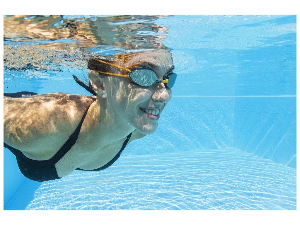 Pohodlný nosní most a rychle nastavitelný silikonový pásek na hlavu navíc zaručují individuální a pohodlné nošení. Naše brýle jsou vyrobeny z materiálů bez latexu a PVC, díky čemuž jsou bezpečné pro pokožku.