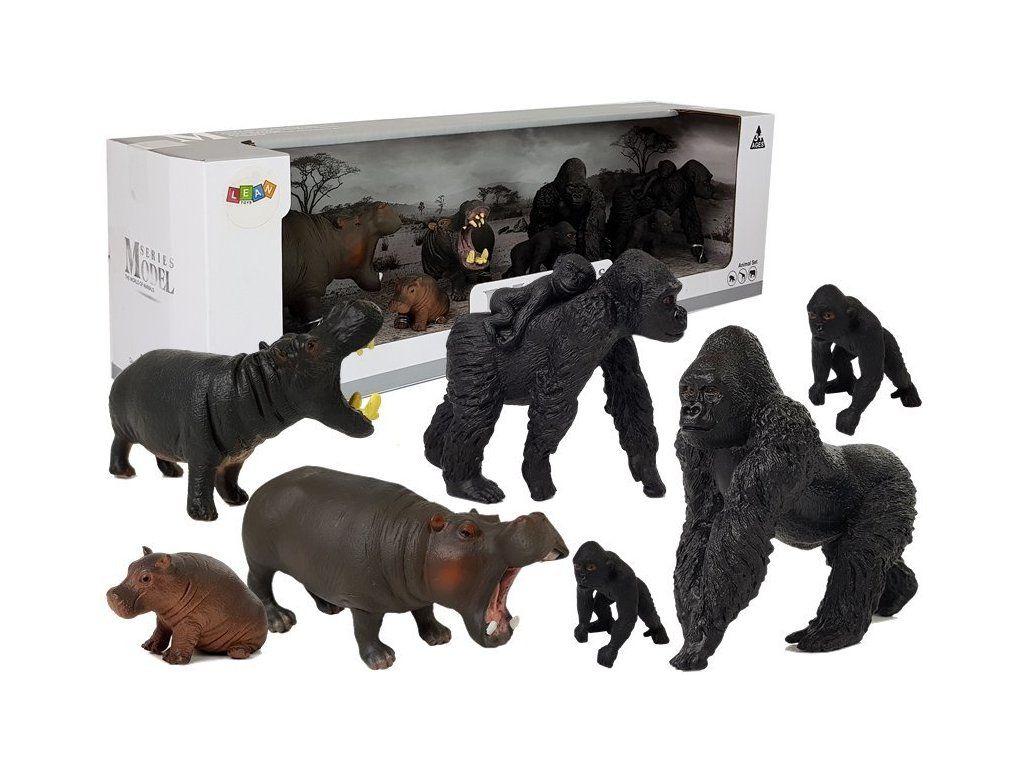 Zvířátka safari sada 7 kusů gorily a hroši