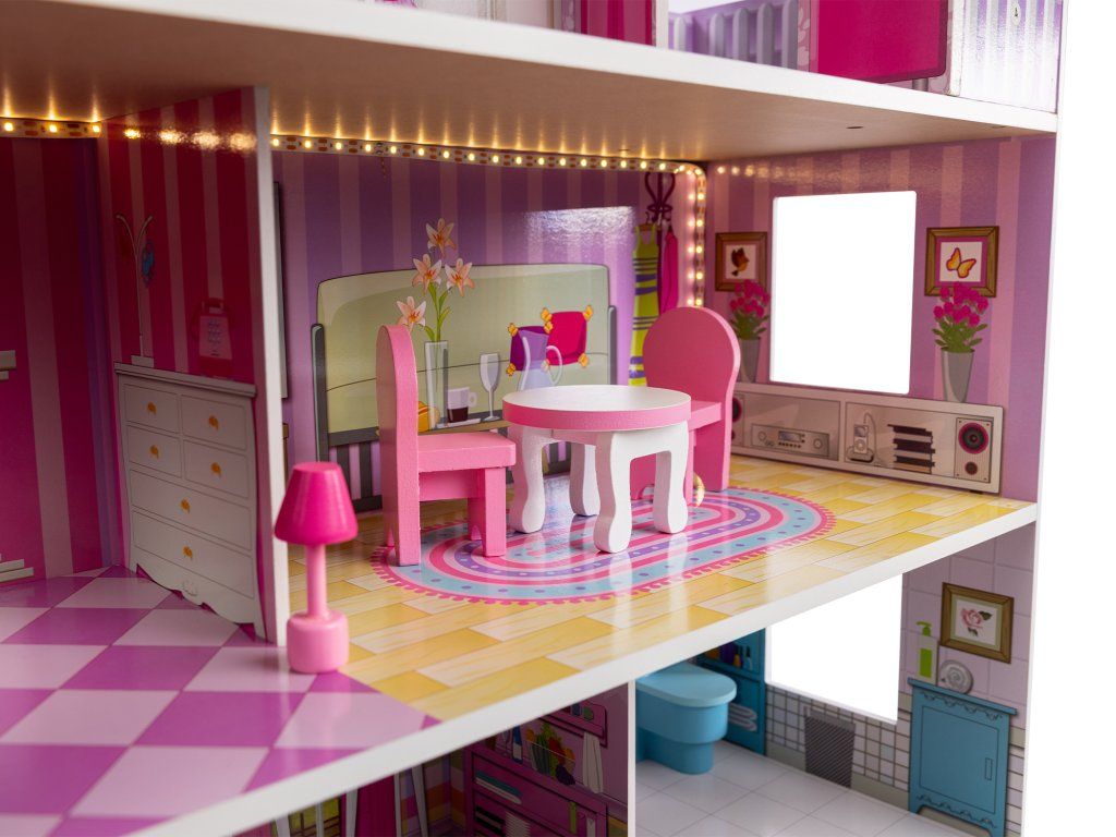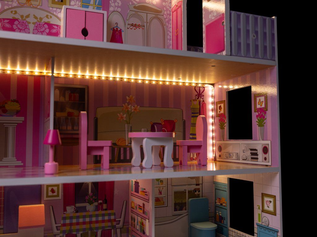 - Pečlivý design: Každé patro domečku je detailně vyzdobeno, s malovanými stěnami, podlahami a okny.